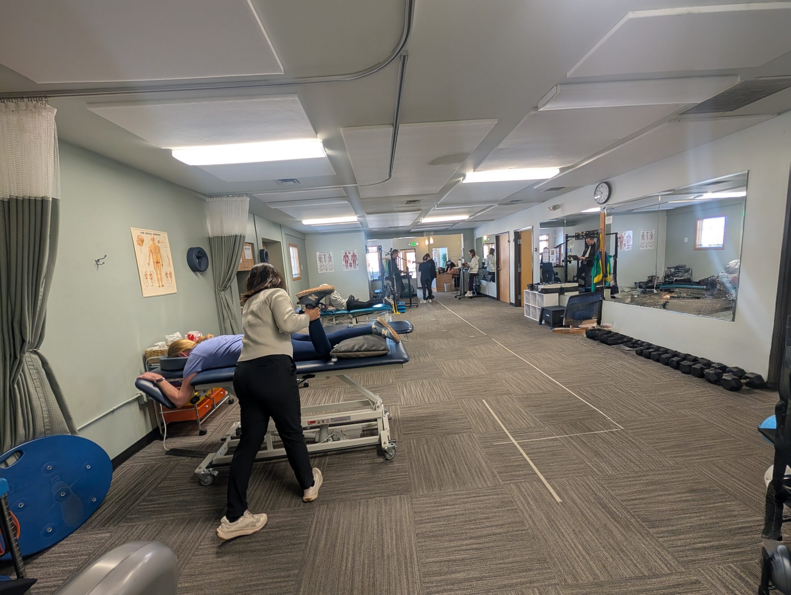 This location specializes in Orthopedics, Hands-On / Manual Treatments, Therapeutic Exercise & Movement Therapy, Pain Relief Modalities, Advanced / Specialized Treatments (dry needling & shockwave), Sports & Performance Therapy, Functional & Rehabilitation Training, Education & Self-Management, and Female Pelvic Floor therapies.
